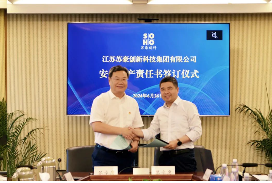 今年6月是全国第23个“安全生产月”,苏豪创科集团围绕“人人讲安全、个个会应急——畅通生命通道”活动主题,认真贯彻苏豪控股集团关于安全生产的各项部署,扎实开展一系列“安全生产月”主题活动。 6月26日,苏豪创科集团安委会成立暨第一次全体大会召开,党委委员、总经理助理夏天荣主持会议。 会议学习苏豪控股集团安全生产“六大体系”工作方案及提升行动,与各部门、各子公司签订《安全生产责任书》,落实全员《安全承诺书》的签订。 苏豪创科集团党委书记、董事长、总经理周安对安全生产工作提出要求: 1.提高政治站位,充分认清安全生产的严峻形势,安全是创科集团发展的通道。 2.加强组织领导,建立健全安全责任体系,层层压实,形成安全生产责任全覆盖。 3.强化隐患排查治理力度,坚持源头控安。 4.建立安全生产考核与评价机制。