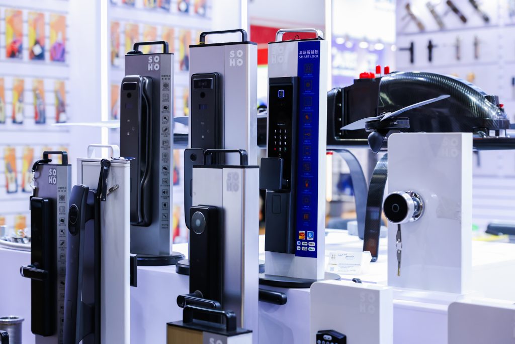 五金展区针对不同市场需求,提供个性化服务、定制化生产,现场展出20款造型各异的门锁,例如:安全系数更高的双摄像头智能门锁、支持“一带一路”沿线国家22种语言界面切换的智能门锁等,以柔性制造与全球需求深度共振,以技术创新与场景适配形成合力,为全球客户打造差异化解决方案,“产品开发结合当地审美偏好和生活习惯,是我们打开新市场的钥匙”,产品负责人说道。