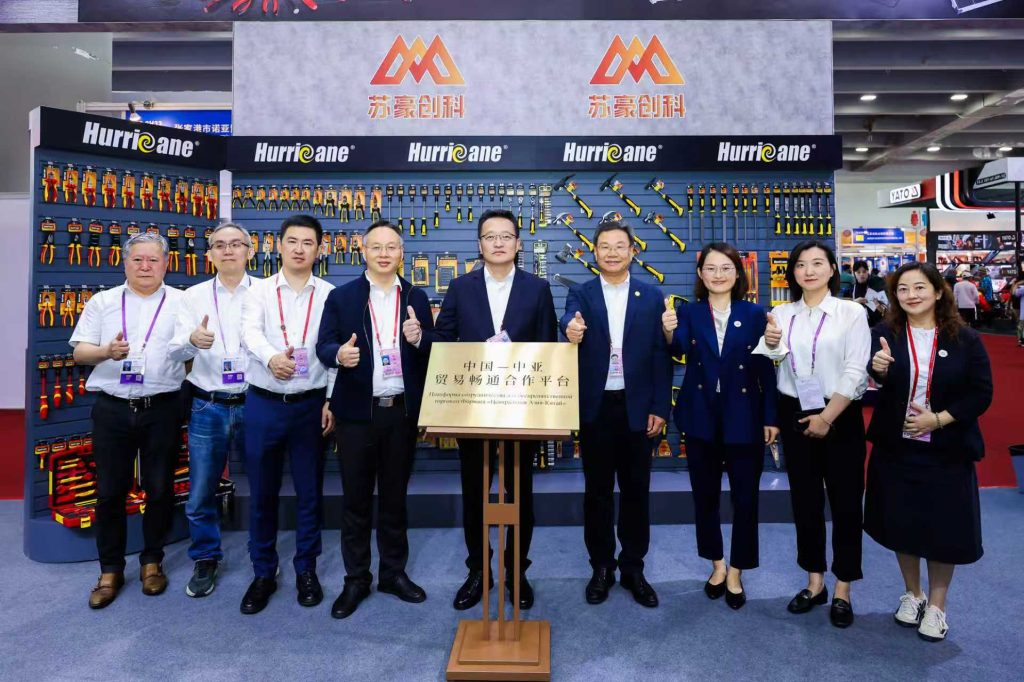 在本届广交会上,由苏豪控股集团与南京市玄武区共同承建的“中国—中亚贸易畅通合作平台”标识首次亮相于公司工具品牌展位,该展位瞄准中亚新蓝海,以TEMPEST等自主品牌为依托,贴合DIY理念做足手工具文章,搭建起面向“一带一路”市场的产品专区。公司党委书记、董事长周安现场接受中央电视台采访,重点介绍了该平台对于开拓中亚五国等“一带一路”市场发挥的重要作用。