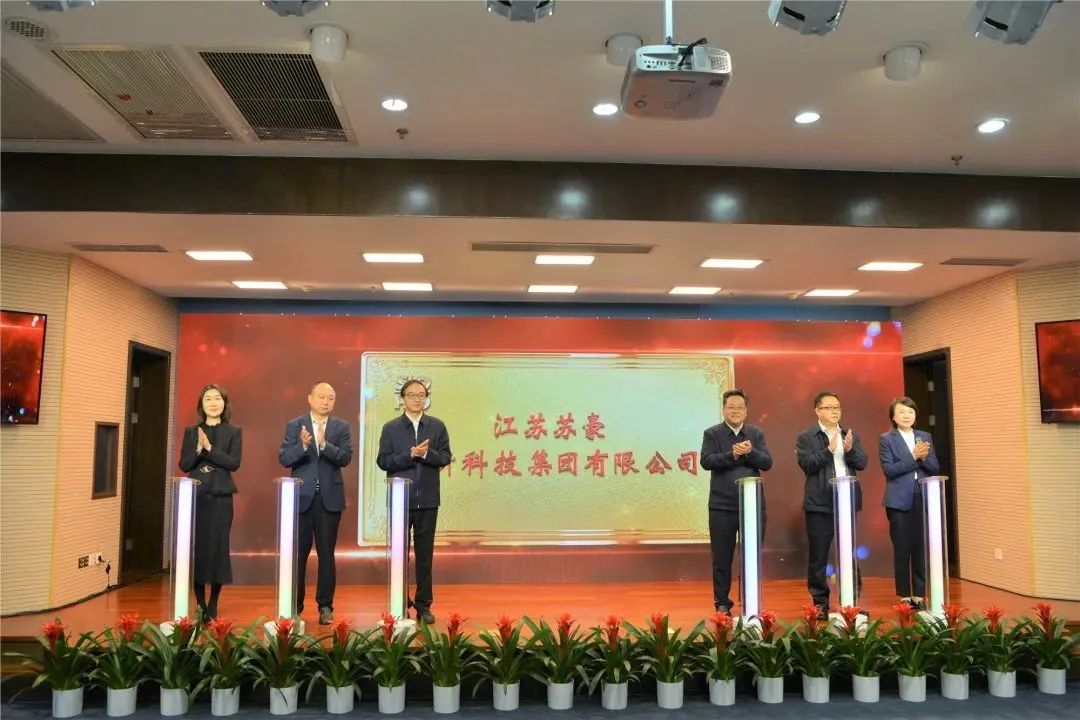 4月30日下午,江苏苏豪创新科技集团有限公司揭牌仪式在南京举行。苏豪控股集团党委书记、董事长周勇致辞,并与省国资委副主任郁平,省自贸办副主任汤大军,雨花台区委书记、中国(南京)软件谷党工委书记张连春,中信保江苏分公司副总经理张虹玮,省港口集团副总经理唐文共同为苏豪创科集团公司揭牌。揭牌仪式由苏豪控股集团副总裁丁海主持,集团在宁党委班子成员、雨花台区副区长刘峰出席。